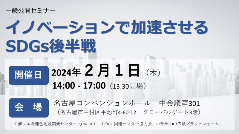 一般公開セミナー「イノベーションで加速させるSDGs後半戦」開催のお知らせ