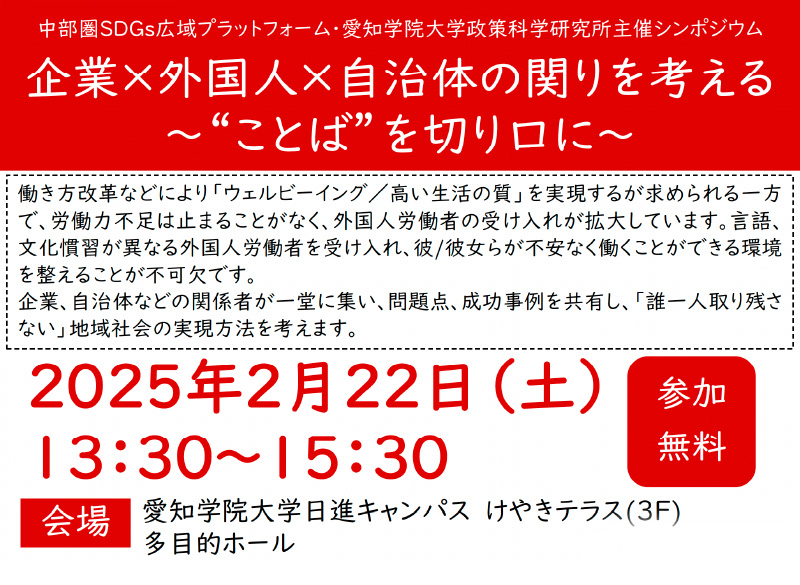 中部圏SDGs広域プラットフォーム・愛知学院大学政策科学研究所主催シンポジウムのご案内
